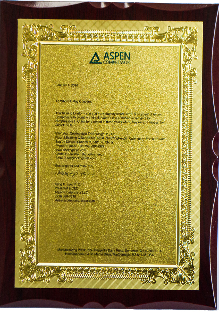 ASPEN壓縮機(jī)授權(quán)書(shū)